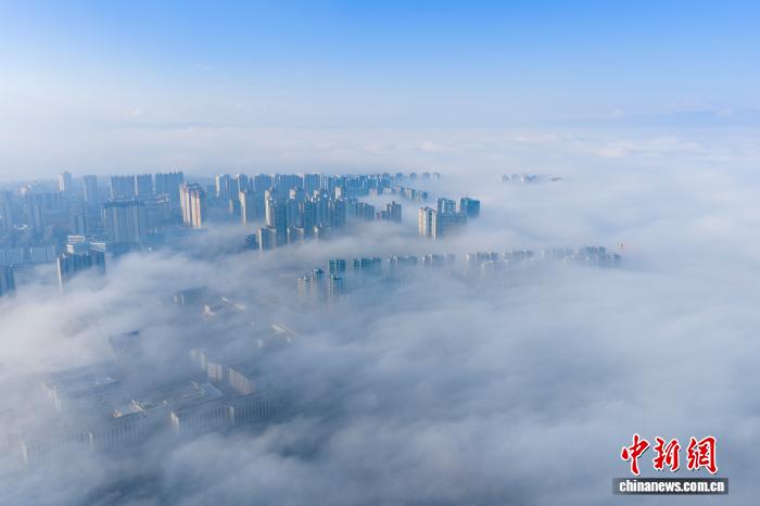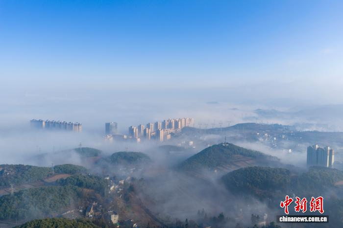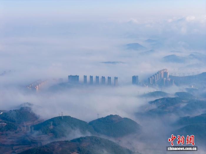 1月3日清早,贵州省毕节市威宁彝族归族苗族自制县乡中呈现仄淌云好景,乡市下楼正在云雾中一目了然,琳琅满目,好像“天外之乡”。管庆巍 摄